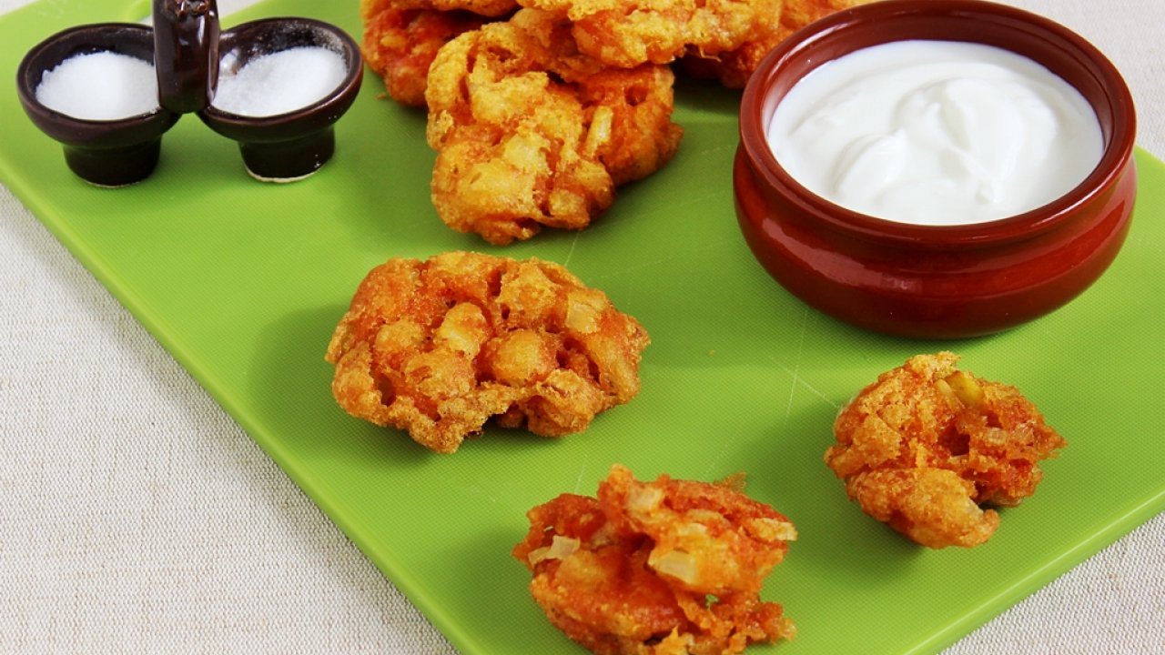 A fűszeres hagyma sütés közben édeskésre karamellizálódik, és egy ropogós réteg vonja be, melyhez nagyon jól illik a natúr joghurt, vagy éppen a tejföl.